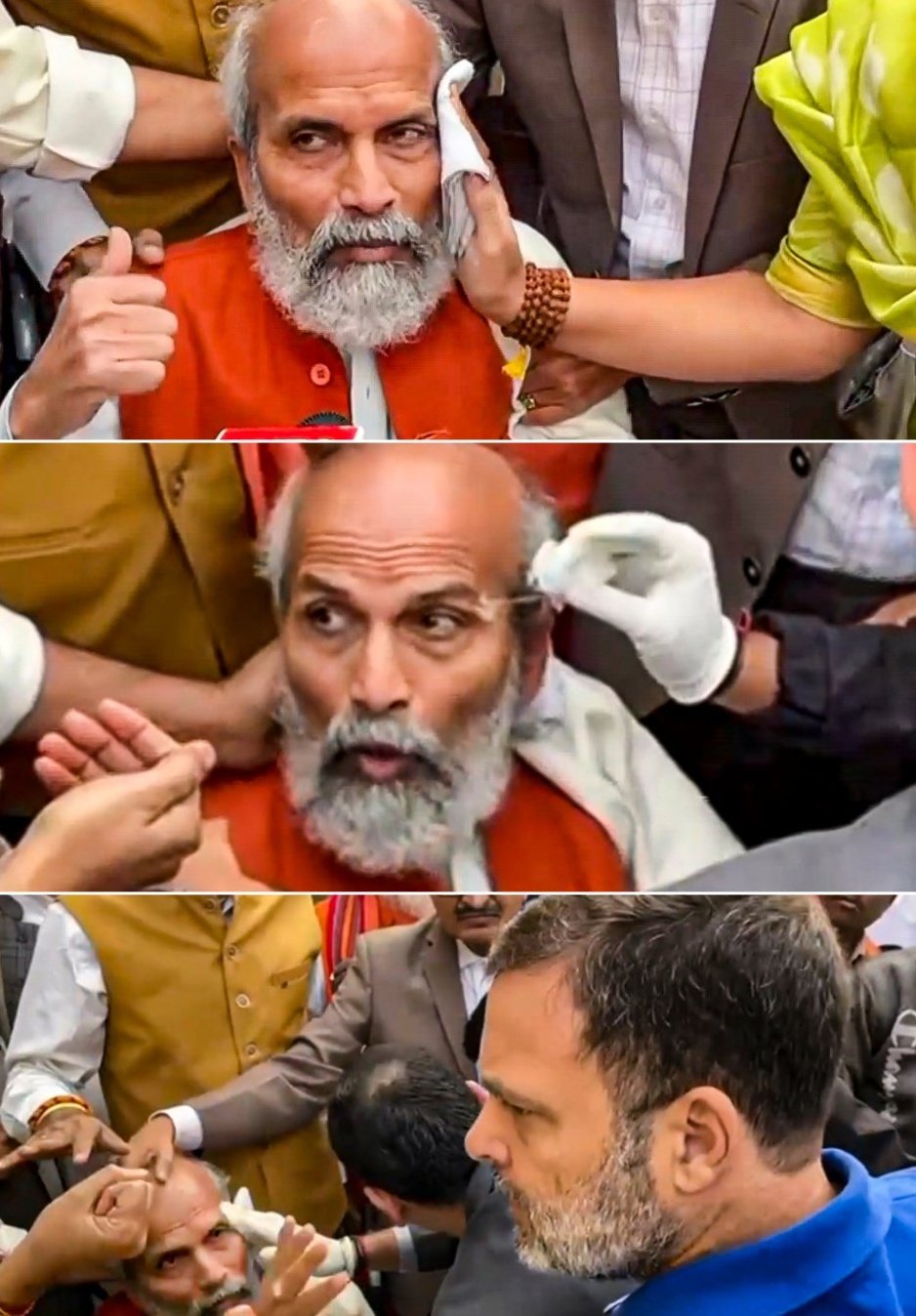 बीजेपी सांसद प्रताप चंद्र सारंगी ने कहा, "राहुल गांधी ने एक सांसद को धक्का दिया जो मेरे ऊपर गिर गया जिसके बाद मैं नीचे गिर गया। मैं सीढ़ियों के पास खड़ा था जब राहुल गांधी आए और एक सांसद को धक्का दिया जो मेरे ऊपर गिर गया।" वहीं, प्रताप सारंगी की तबीयत बिगड़ गए हैं। जिसके बाद उन्हें एंबुलेंस से अस्पताल ले जाया गया है. फर्रुखाबाद सांसद मुकेश राजपूत ने भी राहुल गांधी पर धक्का माराने का आरोप है। वो आईसीयू में भर्ती हैं।