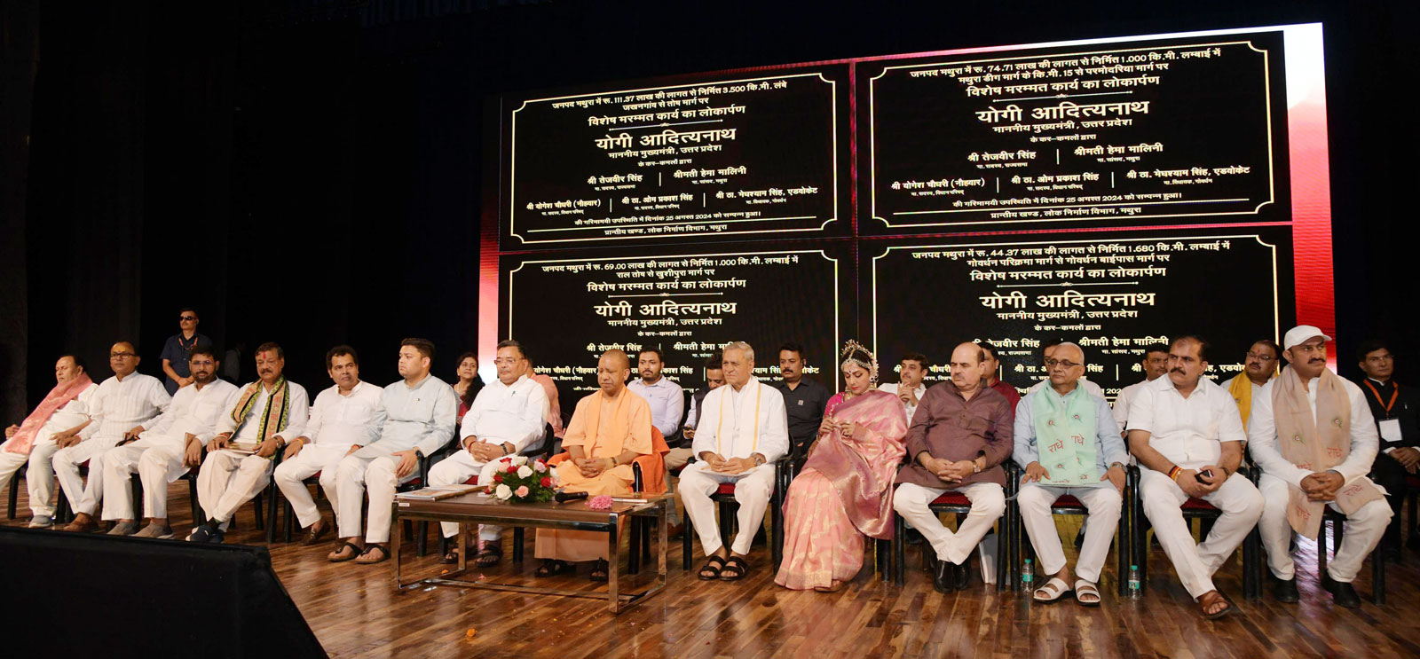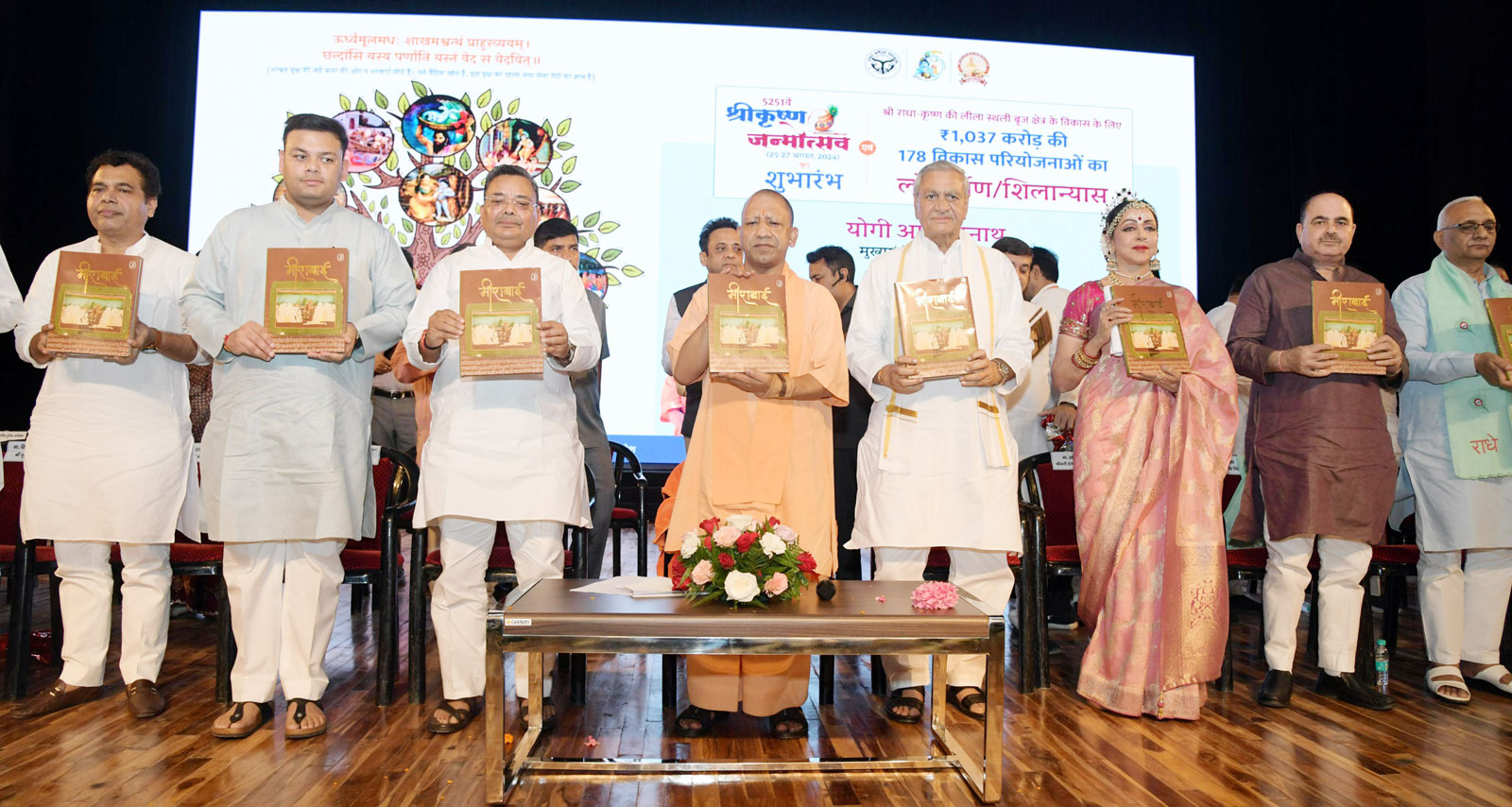 मुख्यमंत्री योगी आदित्यनाथ ने सोशल मीडिया पर पोस्ट किया- राधे-राधे! श्रीकृष्ण जन्माष्टमी एवं नन्दोत्सव से पूर्व आज लीलाधारी भगवान श्रीकृष्ण की जन्मस्थली मथुरा में श्रीकृष्ण जन्मोत्सव के शुभारंभ कार्यक्रम में सम्मिलित हुआ। इस अवसर पर बरसाना में श्री राधा रानी मंदिर जाने हेतु रोप-वे सुविधा समेत ₹1,037 करोड़ की विभिन्न 178 विकास परियोजनाओं का लोकार्पण/शिलान्यास भी हुआ। साथ ही उत्तर प्रदेश ब्रज तीर्थ विकास परिषद द्वारा संकलित ग्रंथ 'मीराबाई' एवं प्रख्यात अभिनेत्री पद्मिनी कोल्हापुरे जी के भजन एल्बम का विमोचन भी किया। जनपद वासियों को हार्दिक बधाई एवं शुभकामनाएं!