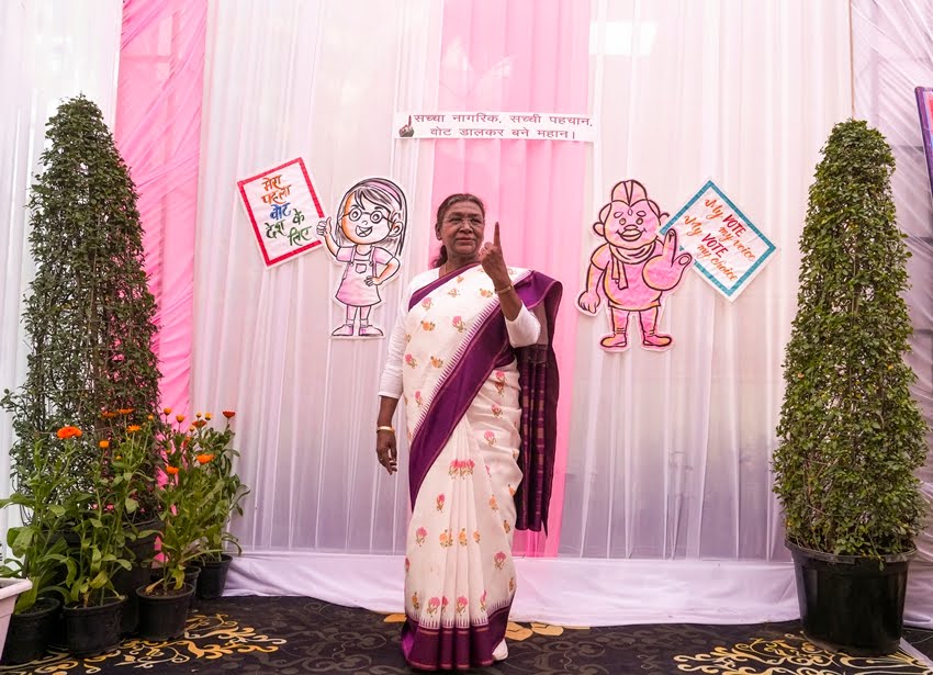 राष्ट्रपति द्रौपदी मुर्मू ने दिल्ली विधानसभा चुनाव के दौरान नई दिल्ली में एक मतदान केंद्र पर अपना वोट डाला।(PTI Photo)
