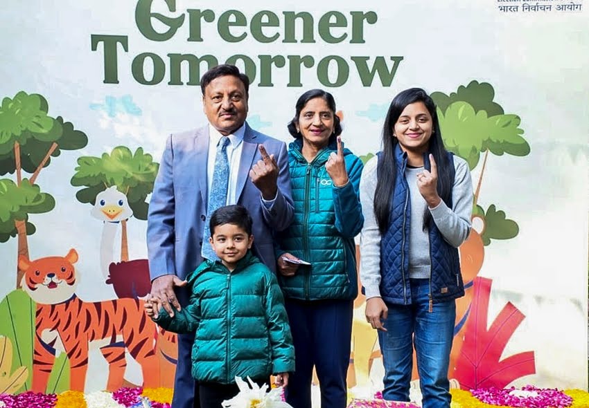 मुख्य चुनाव आयुक्त (CEC) राजीव कुमार ने अपने परिवार के साथ मतदान किया।(PTI Photo)