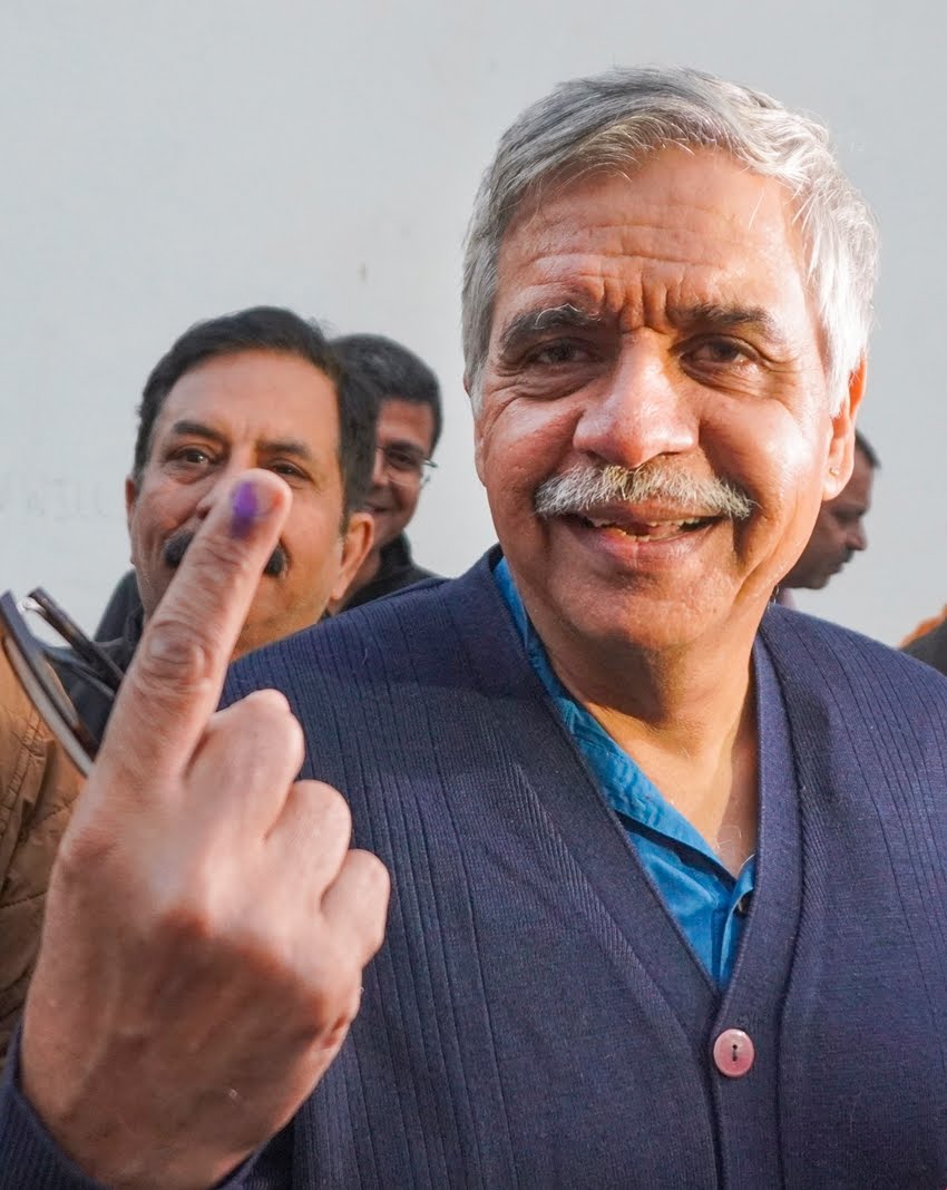 केंद्रीय मंत्री हर्ष मल्होत्रा ने भी मतदान किया। (PTI Photo)