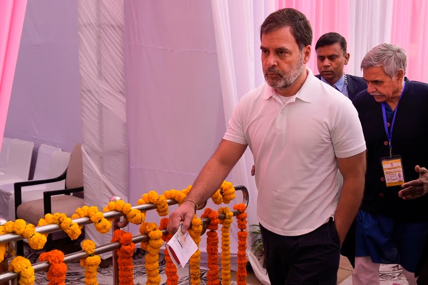 कांग्रेस नेता और लोकसभा में विपक्ष के नेता राहुल गांधी भी वोट डालने के लिए पहुंचे। (PTI Photo)