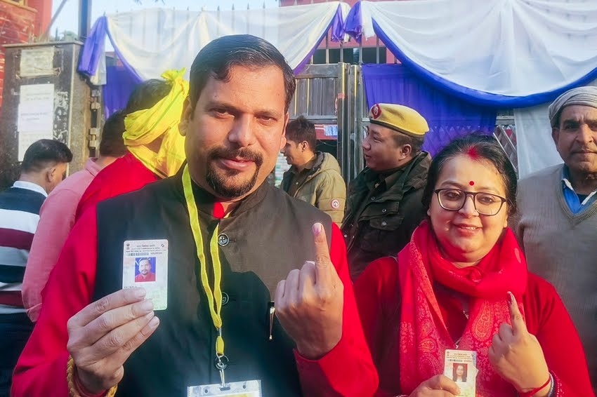 भाजपा उम्मीदवार परवेश साहिब सिंह वर्मा भी अपने परिवार के साथ दिल्ली विधानसभा चुनाव के दौरान नई दिल्ली में एक मतदान केंद्र पर वोट डालने पहुंचे। (PTI Photo)