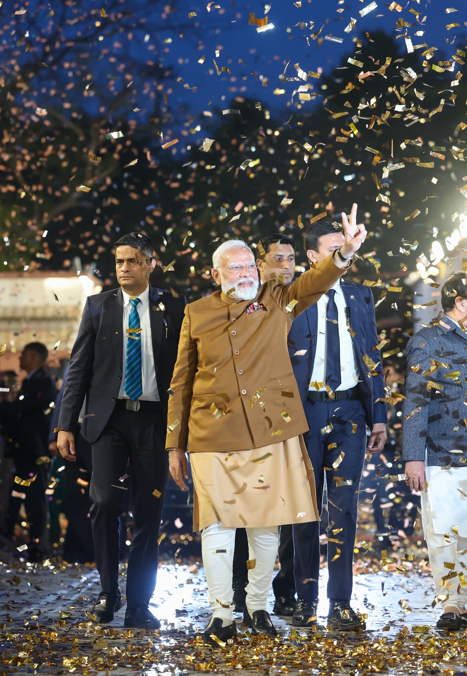 चुनाव में मिली जीत के बाद प्रधानमंत्री नरेंद्र मोदी भी पार्टी मुख्यालय पहुंचे, जहां उनका दिल्ली बीजेपी सांसदों ने भव्य स्वागत किया गया। इस दौरान पीएम मोदी ने कहा कि दिल्ली के लोगों ने आप-दा को बाहर कर दिया। एक दशक की आपदा से दिल्ली मुक्त हुई है। दिल्ली का जनादेश स्पष्ट है। आज दिल्ली में विकास, विजन और विश्वास की जीत हुई है। पढ़ें पीएम मोदी के संबोधन की बड़ी बातें।