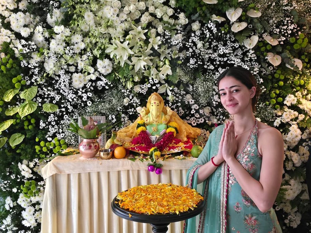 बॉलीवुड एक्ट्रेस अनन्या पांडे ने शनिवार को गणेश चतुर्थी के अवसर पर अपने घर पर ‘गणपति बप्पा’ का स्वागत किया अनन्या ने इंस्टाग्राम पर गणेश चतुर्थी की कई तस्वीरें भी शेयर की है। इन तस्वीरों में एक्ट्रेस अनन्या पांडे एक ग्रीन कलर का सूट पहने हुए नजर आ रही हैं।