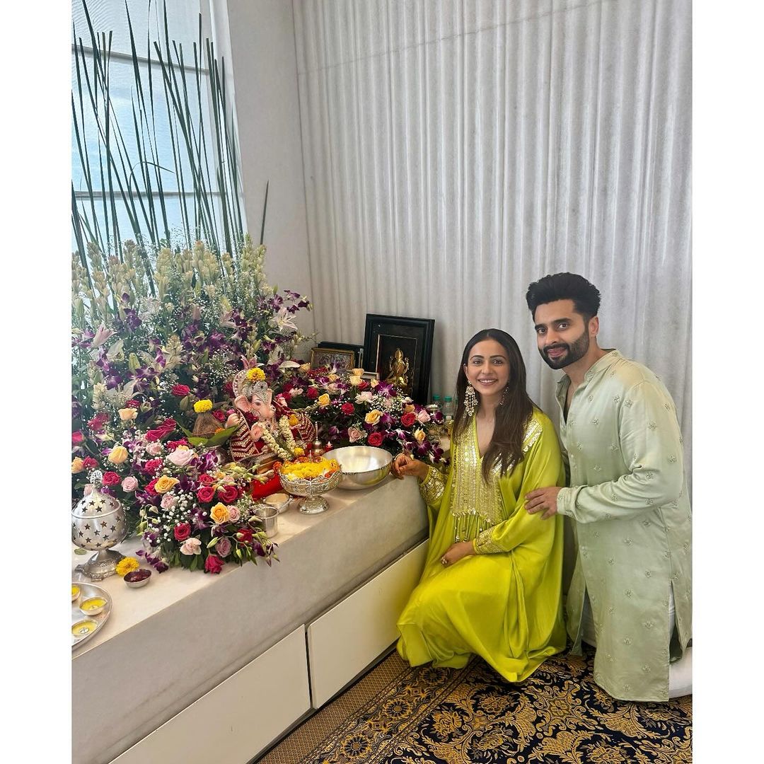 रकुल प्रीत सिंह ने इस साल फरवरी में जैकी भगनानी से शादी की थी। एक्ट्रेस का शादी के बाद ससुराल में यह पहला गणेश चतुर्थी फेस्टिवल है। रकुल ने गणपति सेलिब्रेशन की क्यूट फोटो शेयर की है, जिसमें उनके साथ जैकी भगनानी भी नजर आ रहे हैं।