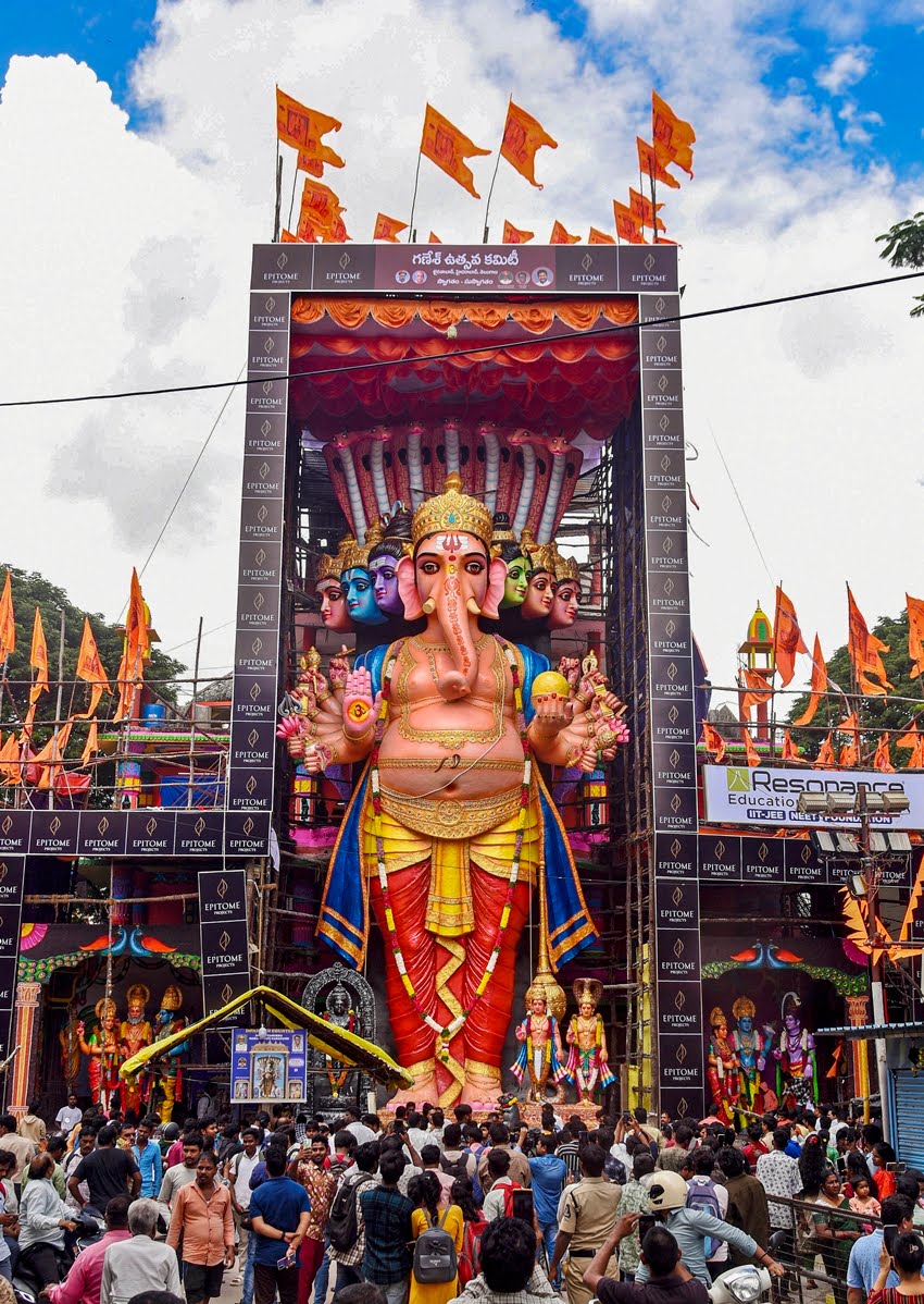 यह तस्वीर नागपुर की है जिसमें गणेश चतुर्थी उत्सव की पूर्व संध्या पर एक जुलूस के दौरान भक्त भगवान गणेश की मूर्ति को पंडाल में ले जाते हुए नजर आ रहे हैं।