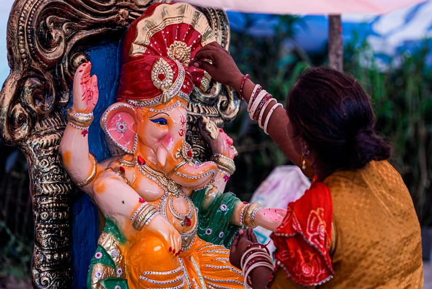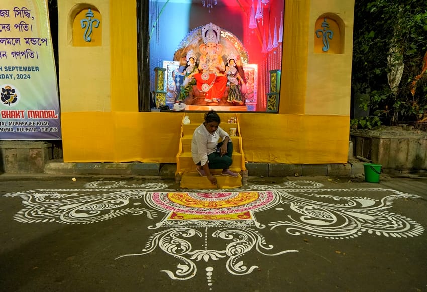 इस तस्वीर में गुवाहाटी में गणेश चतुर्थी उत्सव पर श्रद्धालु पूजा-अर्चना करते नजर आ रहे हैं।