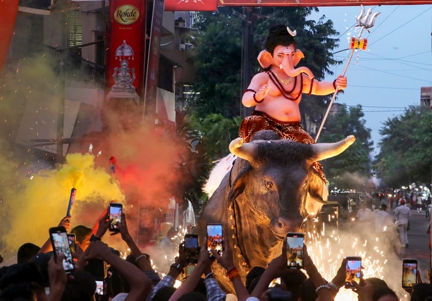 सुबह से ही घरों, मंदिरों और पंडालों में ‘गणपति बप्पा मोरया’ की गूंज सुनाई दे रही है और पूरा माहौल भक्ति और श्रद्धा से भर गया है।