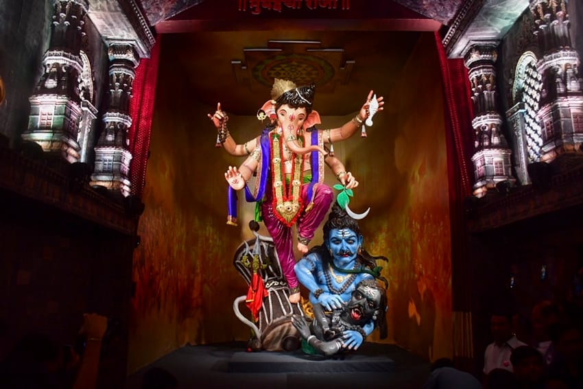 मुंबई के लालबाग में गणेश गली मुंबइचा राजा यानी भगवान गणेश की प्रतिमा का अनावरण किया गया।
