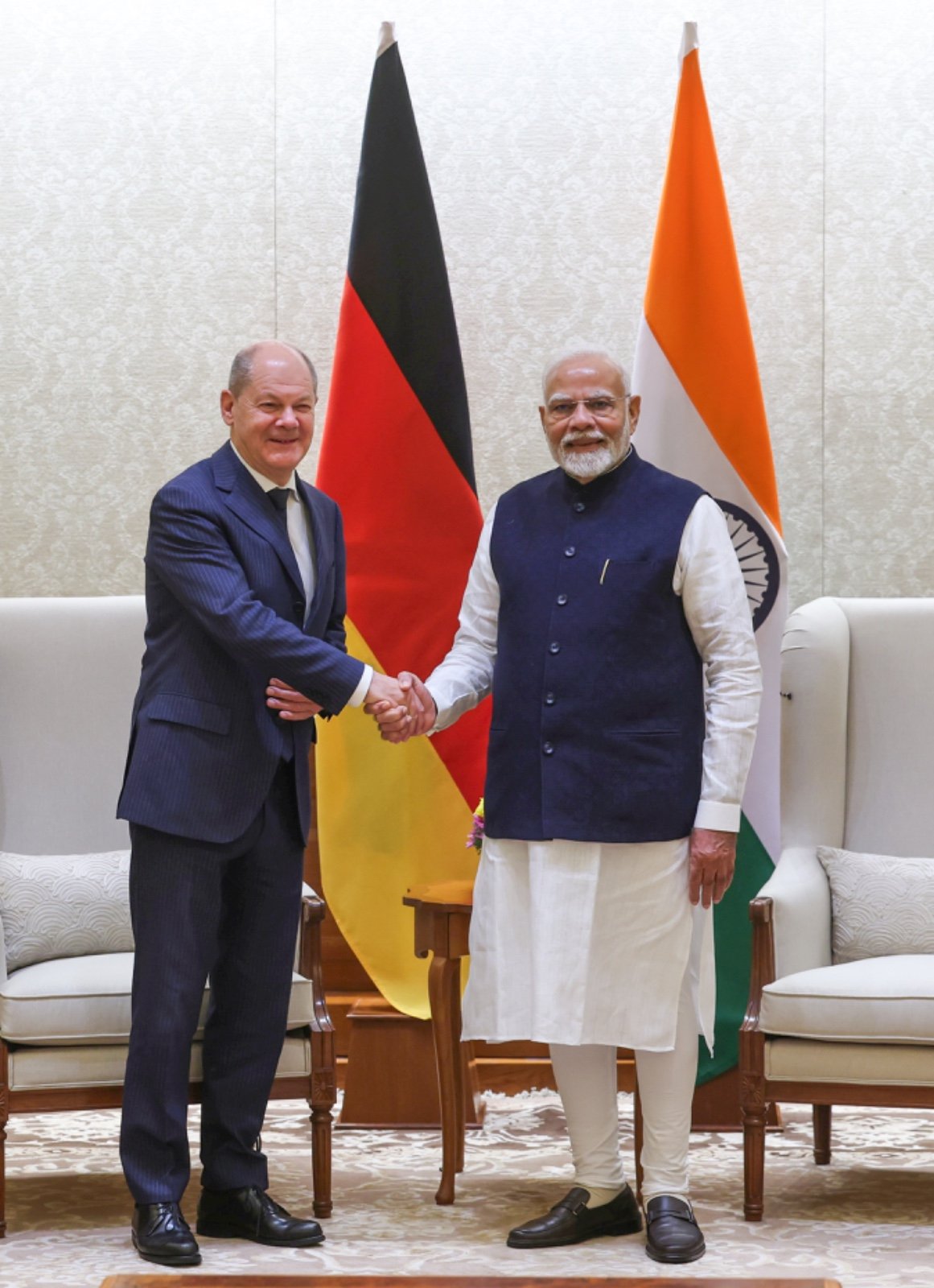 प्रधानमंत्री नरेंद्र मोदी ने जर्मन चांसलर ओलाफ स्कोल्ज़ से मुलाकात पर कहा कि मैं भारत और जर्मनी के बीच 7वें अंतर-सरकारी परामर्श में आपका और आपके प्रतिनिधिमंडल का स्वागत करता हूँ। यह आपकी तीसरी भारत यात्रा है और सौभाग्य से, यह मेरे तीसरे कार्यकाल की पहली IGC है। एक तरह से, यह हमारी मित्रता का तिहरा उत्सव है।