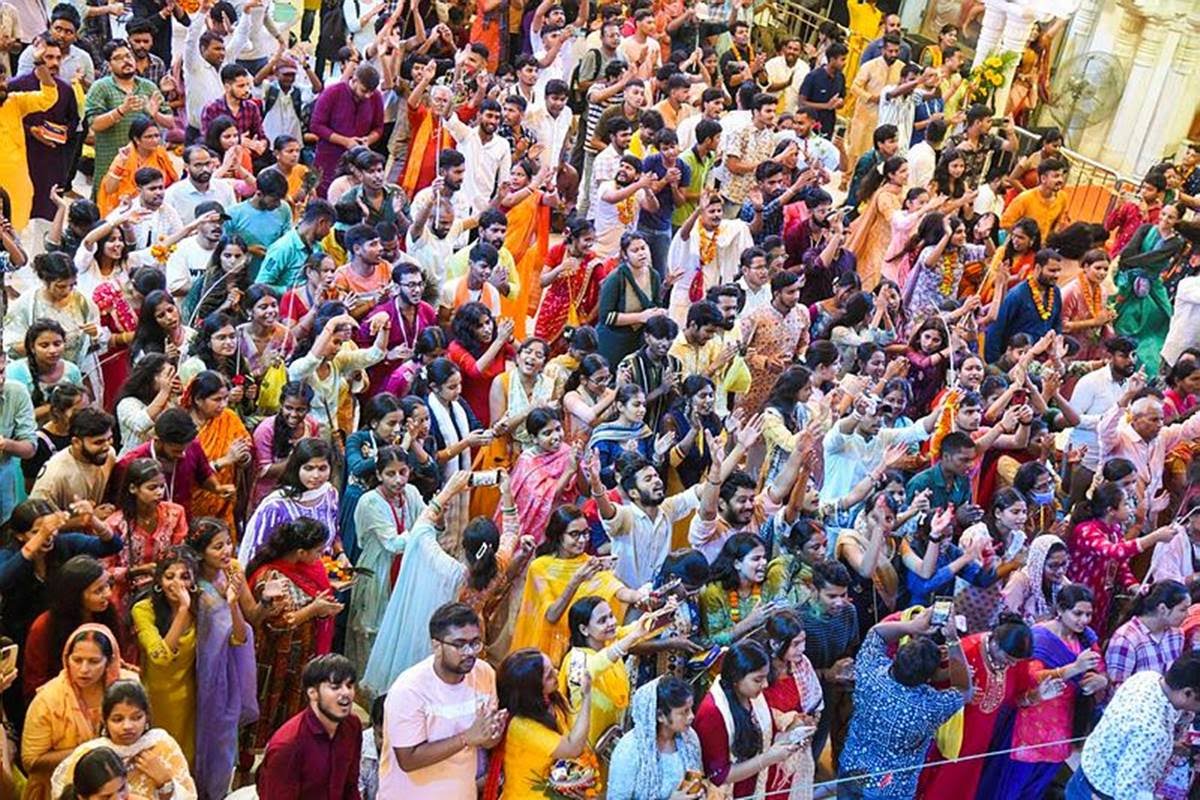 मथुरा में श्री कृष्ण जन्मभूमि मंदिर में भक्तों की उमड़ी भीड़॥