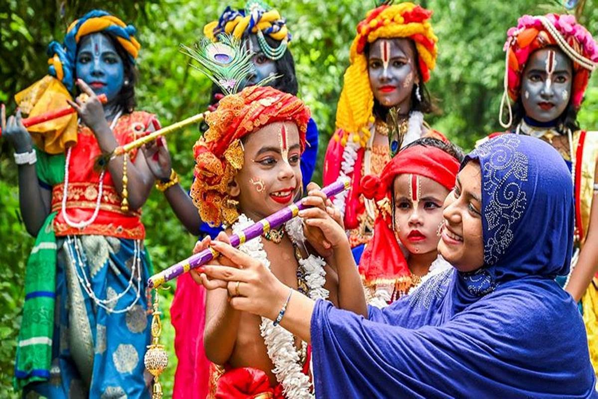 उत्तर प्रदेश के मुख्यमंत्री योगी आदित्यनाथ ने गोरखनाथ मंदिर में कृष्ण जन्माष्टमी समारोह के अवसर पर भगवान श्री कृष्ण की वेशभूषा में सजे बच्चों से बातचीत की।